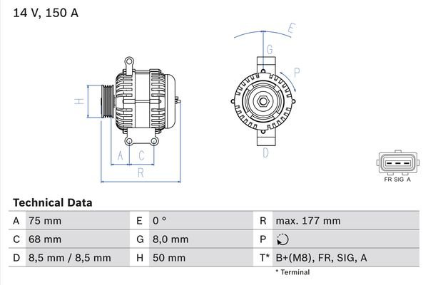 | Mocowanie bezpośrednie </li><li>Prąd ładowania alternatora [A] | 150 |