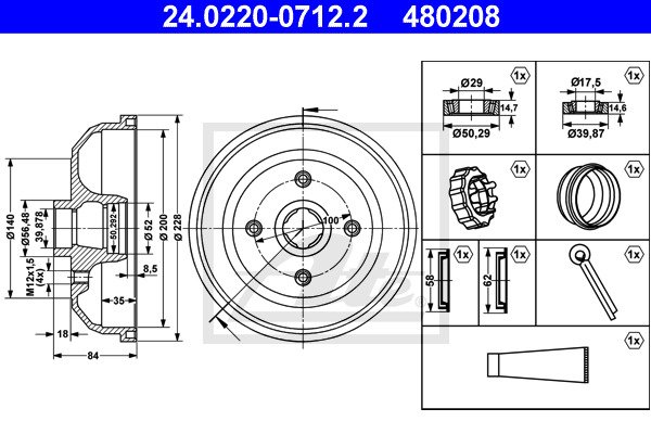 - Całkowita wysokość bębna hamulcowego: 84,0 mm