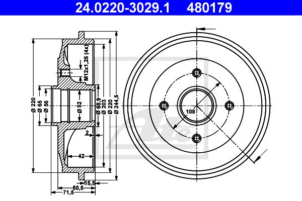 - Całkowita wysokość bębna hamulcowego: 71,5 mm