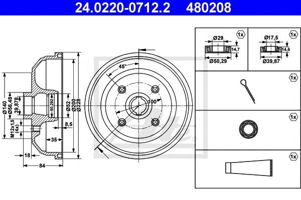 - Całkowita wysokość bębna hamulcowego: 84,0 mm