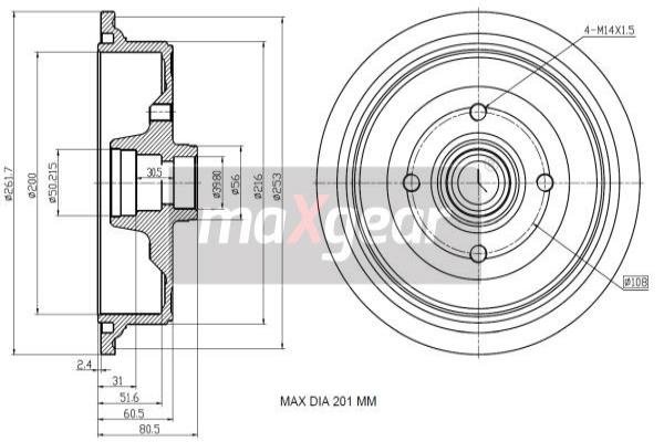 - Całkowita wysokość bębna hamulcowego: 80,5 mm