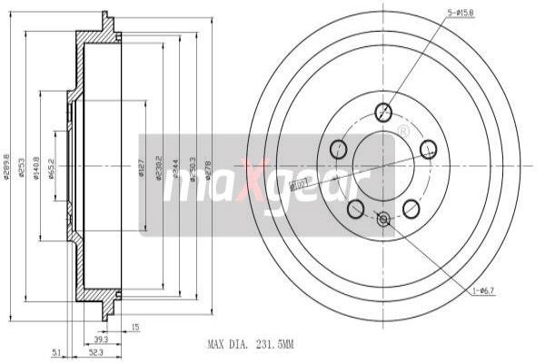 - Średnica bębna hamulcowego: 230