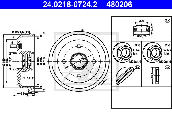- Całkowita wysokość bębna hamulcowego: 76,0 mm