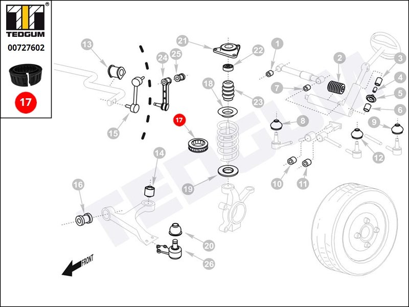 Wkład międzysprężynowy skoda 00637601 wyprodukowała firma TEDGUM. Komponent wkład międzysprężynowy skoda 00637601 dedykowany jest dla Vw Golf mk iii kabriolet (1e7) z silnikiem 1.6 (74kW/100KM) produkowanym w 1998.06 - 2002.06 z kodem silnika: AKS,AFT oraz Vw Golf mk iv (1j1) z silnikiem 1.4 16V (55kW/75KM) produkowanym w 1997.08 - 2005.06 z kodem silnika: AHW,AKQ,AXP,APE,BCA oraz Vw Golf mk iv estate (1j5) z silnikiem 1.4 16V (55kW/75KM) produkowanym w 1999.05 - 2006.06 z kodem silnika: AHW,AKQ,AXP,APE,BCA - wszystkie rodzaje modeli znajdują się poniżej w tabelce Zastosowanie w pojazdach.