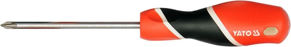 Wkrętak krzyżakowy typ Ph .Trzpień walcowy, wykonany ze stali o symbolu S2, utwardzany do około 58 HRC. Powierzchnia trzpienia satynowana, końcówka robocza utwardzana i piaskowana / wzmacnia to stabilność grota /. Rękojeść wykonana z odpowiednio dobranych tworzyw o różnych twardościach.
