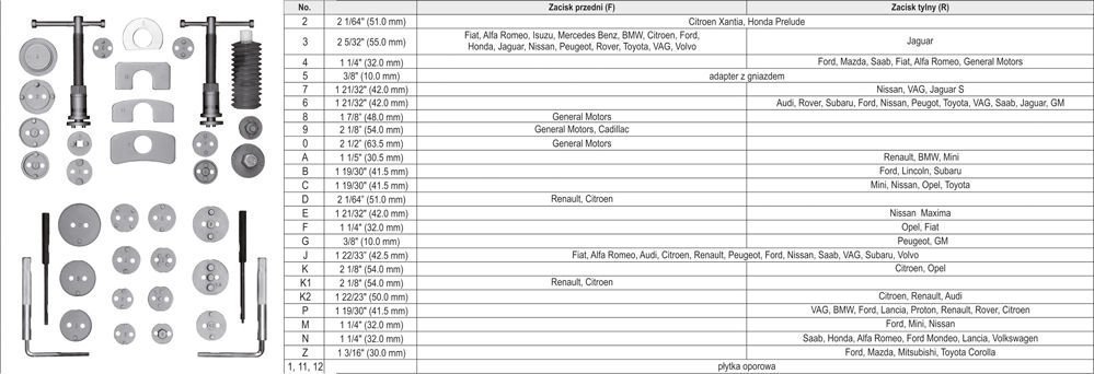 Profesjonalny zestaw separatorów do zacisków hamulcowych. Przyrzၝ sk się z dwóch prasek śrubowych - prawoskrętnej i lewoskrętnej- oraz zestawu talerzyków dostosowanych do większoᖼi modeli samochodów. Zestaw zawiera 35 elementów. Całość umieszczono w solidnej walizce.Dane techniczne