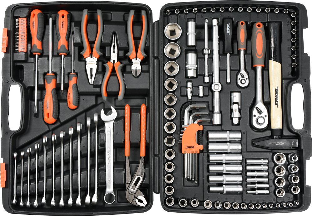 Zestaw narzᆝziowy STHOR sk się z 122 elementów umieszczonych w wygodnej walizce z tworzywa sztucznego. Narzᆝzia zostały precyzyjnie wykonane z materiałów zapewniajၜych ich niezawodność. W zestawie znajdziemy peᐮn zakres nasadek długich i krótkich 1/4" , 3/8" oraz 1/2", przedłu៎k, przegubów Cardana i wiele innych elementów, włၜznie z grzechotkami o 45 zh. Taka konfiguracja sprawia, ៎ zestaw znajdzie zastosowanie przy drobniejszych pracach montażowych, przy naprawach mechanicznych oraz wielu innych pracach w gospodarstwie domowym czy warsztacie.Przeznaczenie / Zastosowanie