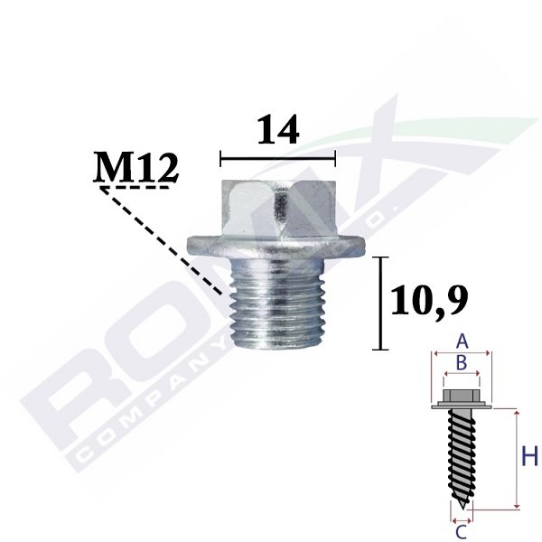 | zewnętrzny sześciokątny </li><li>Wymiar gwintu | M12 |